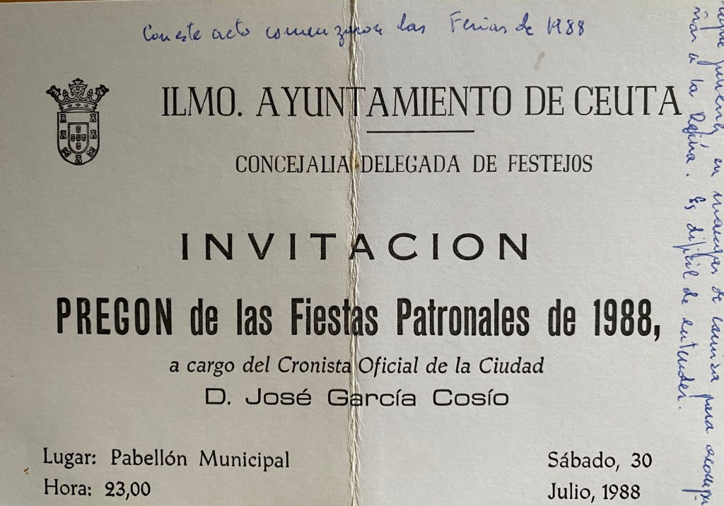 Esta ficha trata sobre el Pregón Inaugural de las Fiestas Patronales de 1988